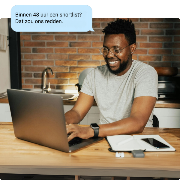 De complete shortlist volgt binnen 3–7 werkdagen. Elke kandidaat is vooraf gevalideerd op skills, beschikbaarheid en cultuurfit zodat jij sneller kunt beslissen.